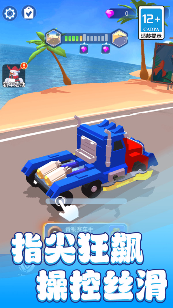3、通过参加不同类型的赛事如竞速赛、淘汰赛赢得奖励,用于解锁新车或升级赛车属性。