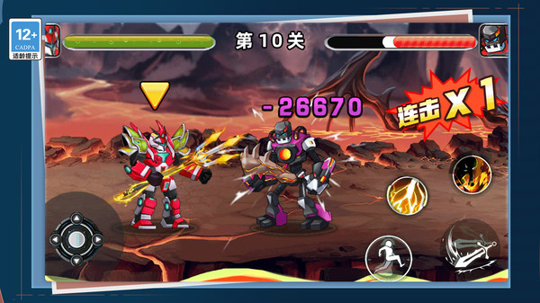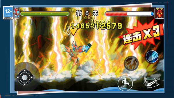 3、自由使用攻击技能搭配,组合强力连击,击败关卡敌人机甲获胜。