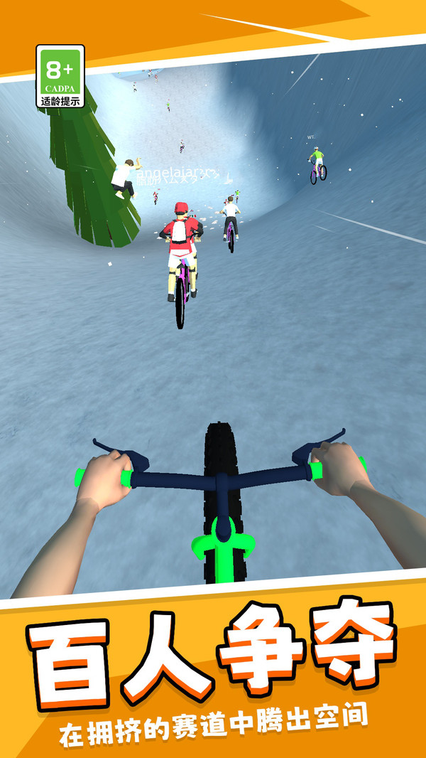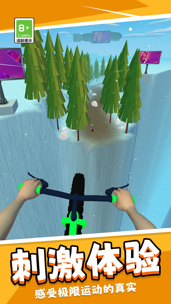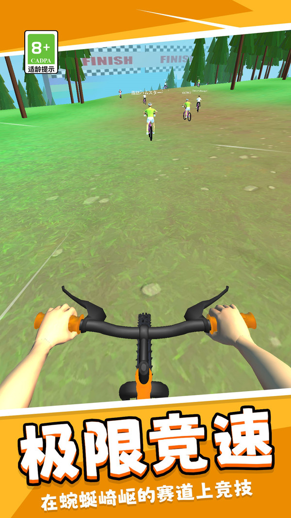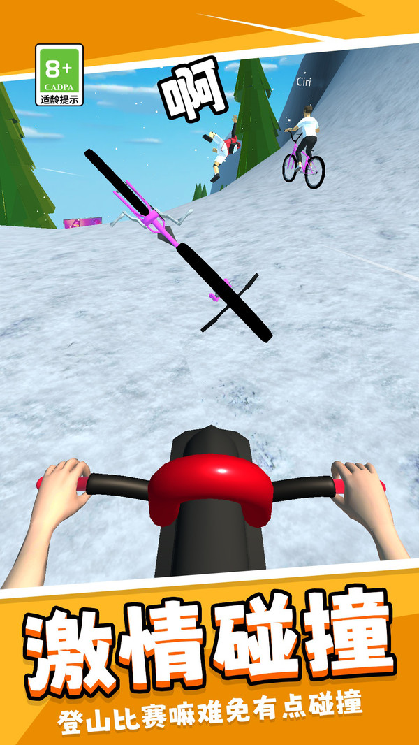 1、按住屏幕控制自行车加速,左右滑动控制移动方向。