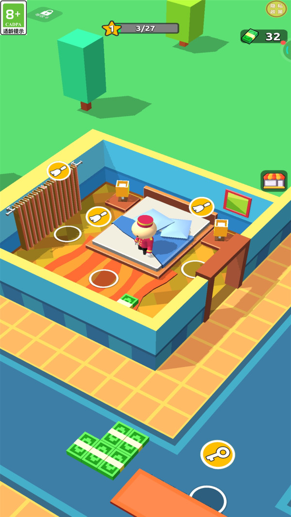 3、利用赚取的收益解锁更多的酒店房间,提供多个顾客同时入住。