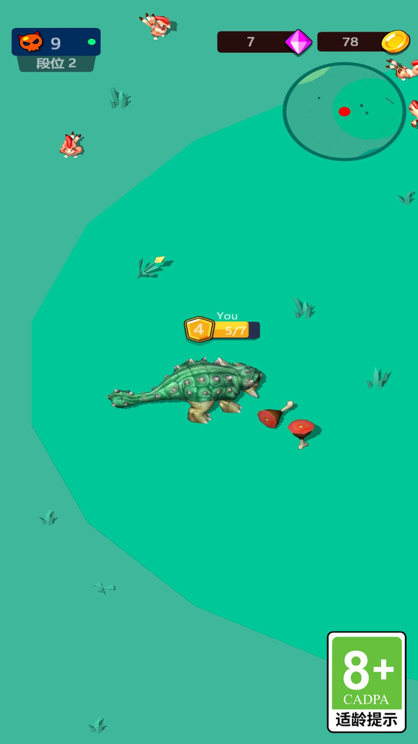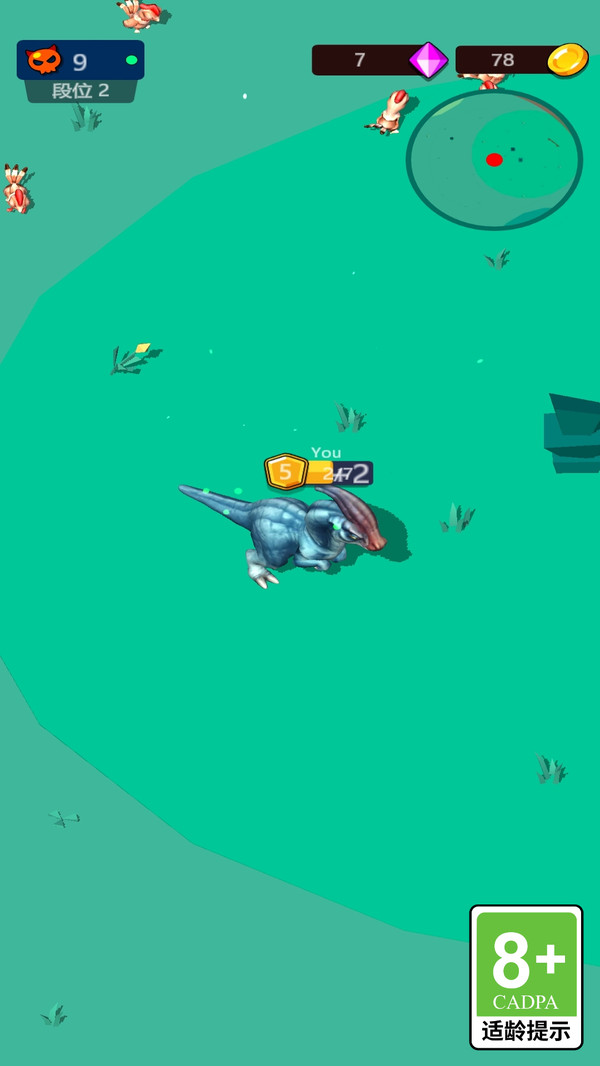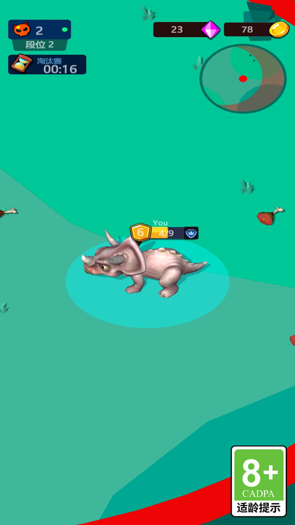 2、通过进化,恐龙的体型等级会变大,吞噬比你小的对手生存到最后。