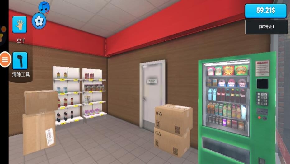 1、控制自己的角色来到自己的超市,首先要做的事情就是填满货架。