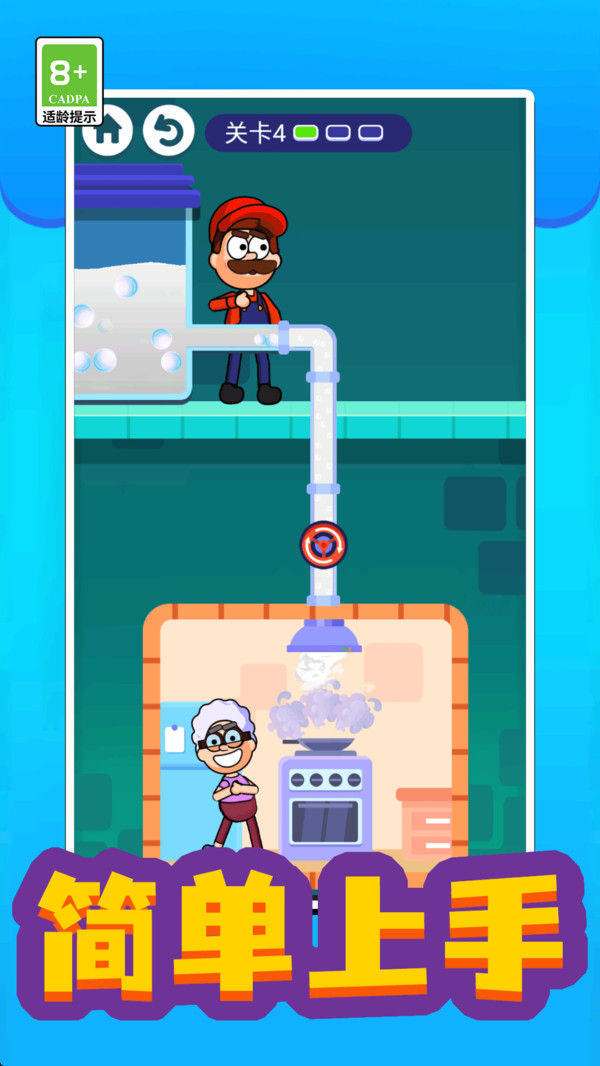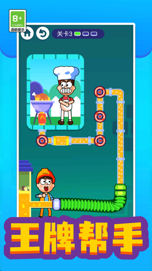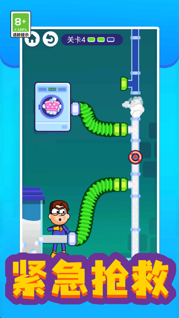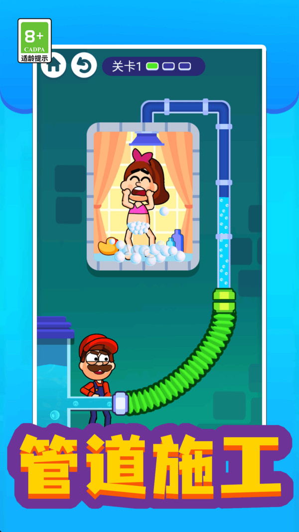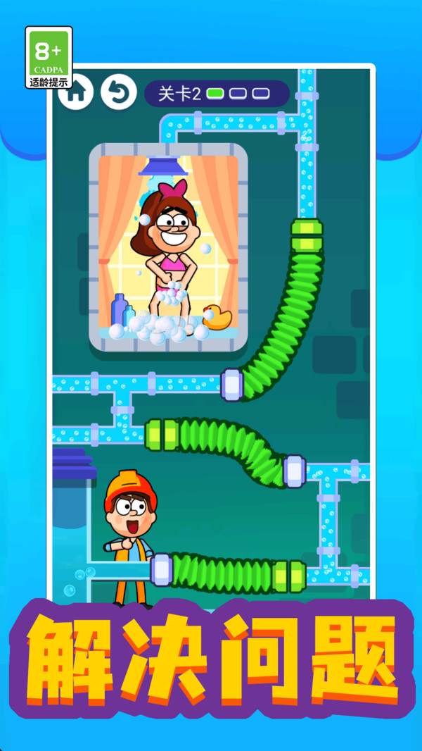 2、每一关都设置了不同的浴室布局和水管连接难题,需要玩家巧妙布局确保水流畅通无阻;