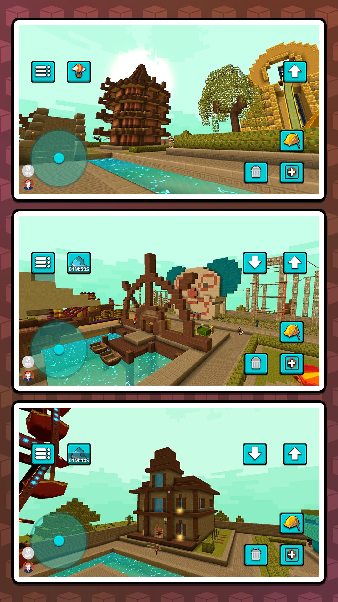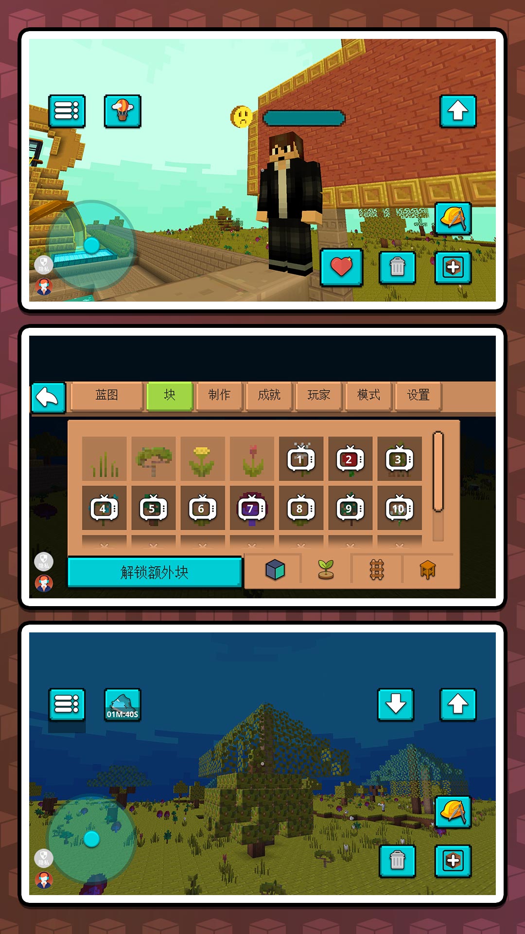 4、解锁超过200种建筑模板,自由组合不同风格的像素建筑,创造独一无二的天际线景观。