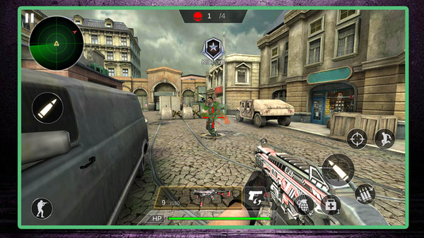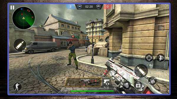 2、左侧屏幕点击移动角色,右侧控制射击瞄准跳跃等战术动作,击杀关卡敌人。
