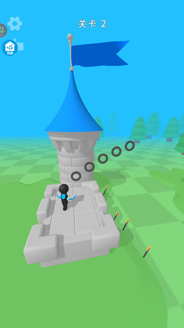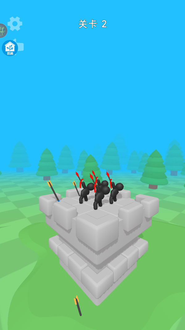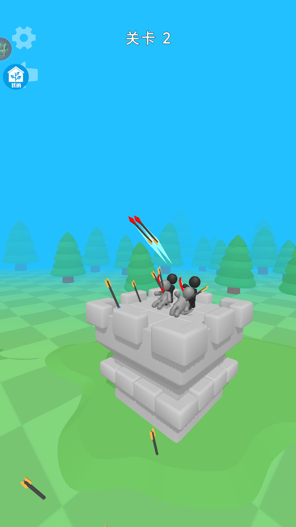 2、在关卡中,玩家需要点击屏幕滑动来控制弓箭射击的角度力度,射杀全部敌人过关。