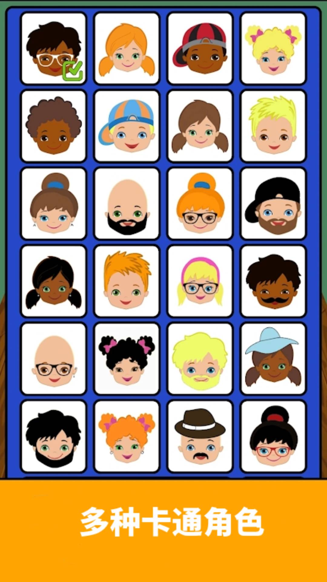 你来猜猜我是谁是一款经典儿童向益智问答桌游的数字化版本,专为锻炼观察力、逻辑推理与语言表达能力而设计。玩家需通过提问人物特征,如发色、眼镜、胡须、帽子等属性,逐步排除不符合条件的角色,最终锁定对手隐藏的神秘人物。游戏支持单人挑战电脑或双人对战模式,界面色彩明快,角色形象可爱多样,操作简单直观,孩子可轻松上手。随着关卡推进,还能解锁新角色、主题棋盘与个性化皮肤,寓教于乐,在欢笑中提升思维敏捷度与社交互动能力。