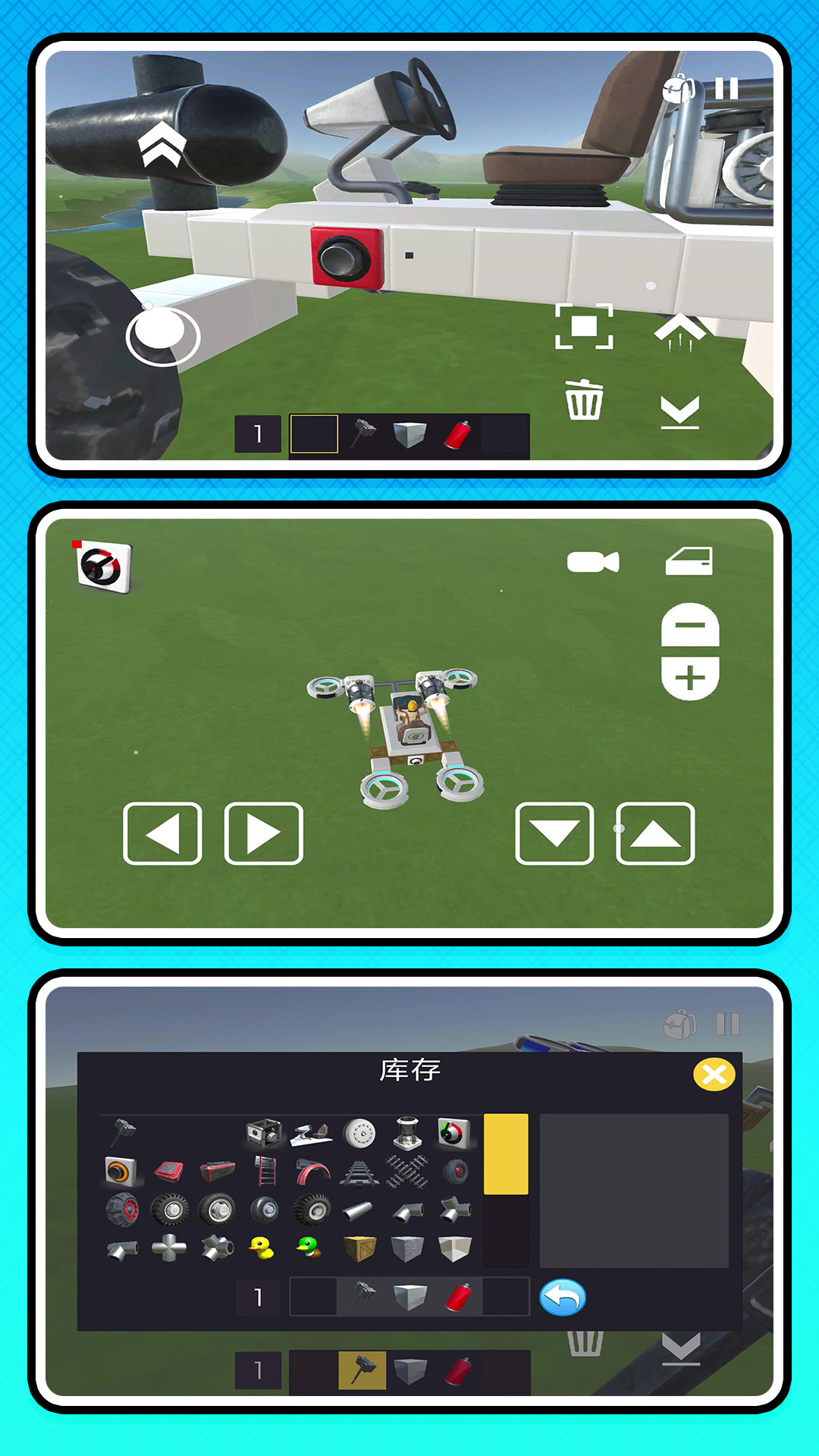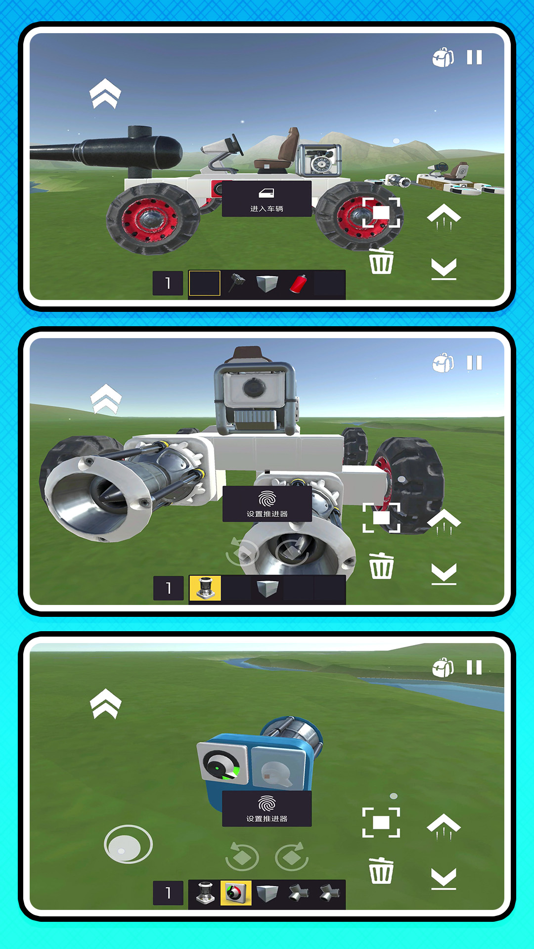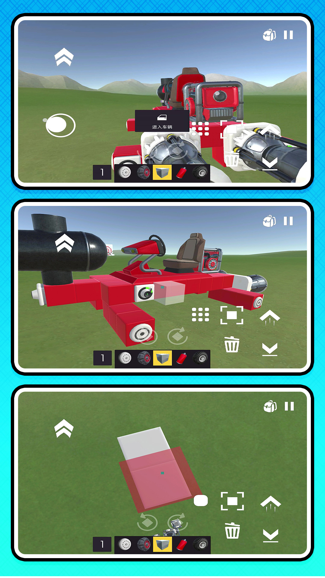 2、点击使用不同的工具,可以直接的建造新的车辆,加入新的道具,完成任务。