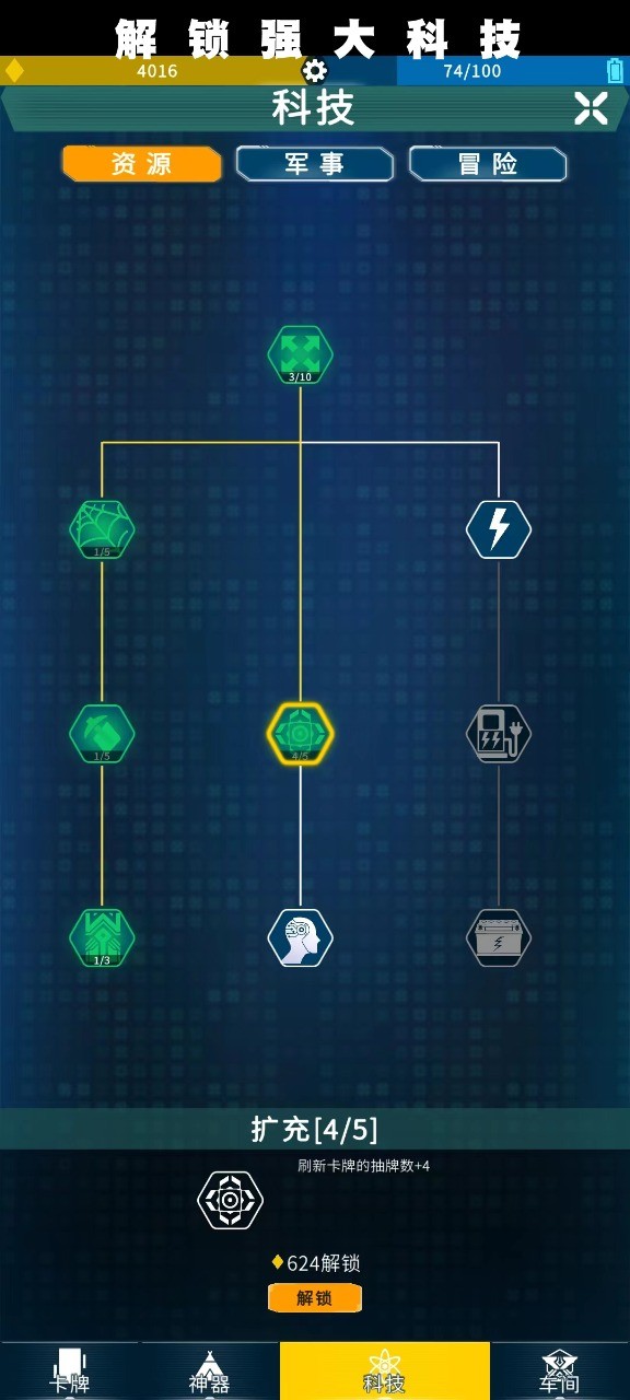 1.前期优先合成资源采集类卡牌确保基础物资供给,至少要储备三组自动采矿装置卡应对突发危机。