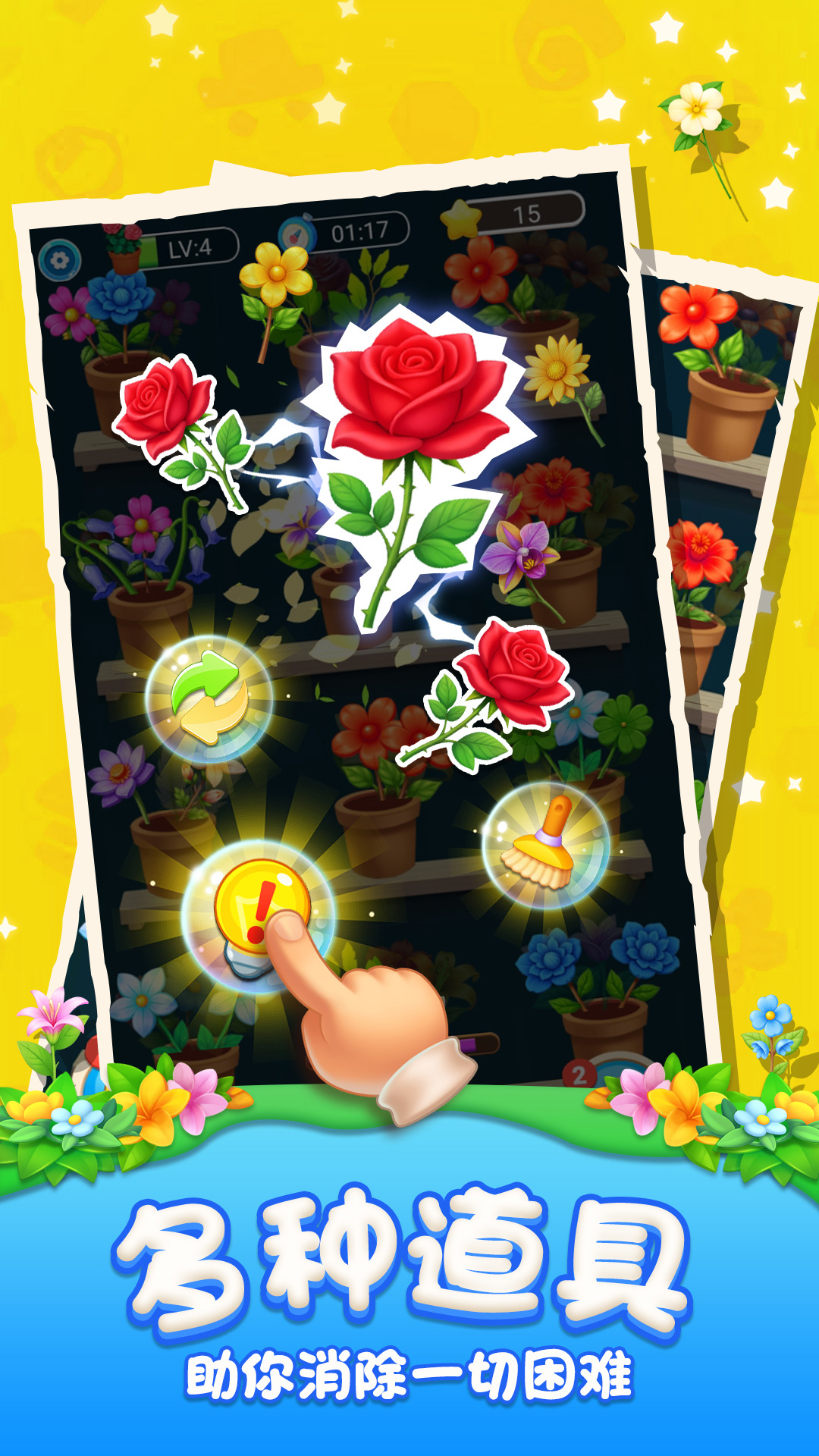 3、每关开始先观察整体布局,优先处理边缘位置的花卉能为后续创造更多排列空间。