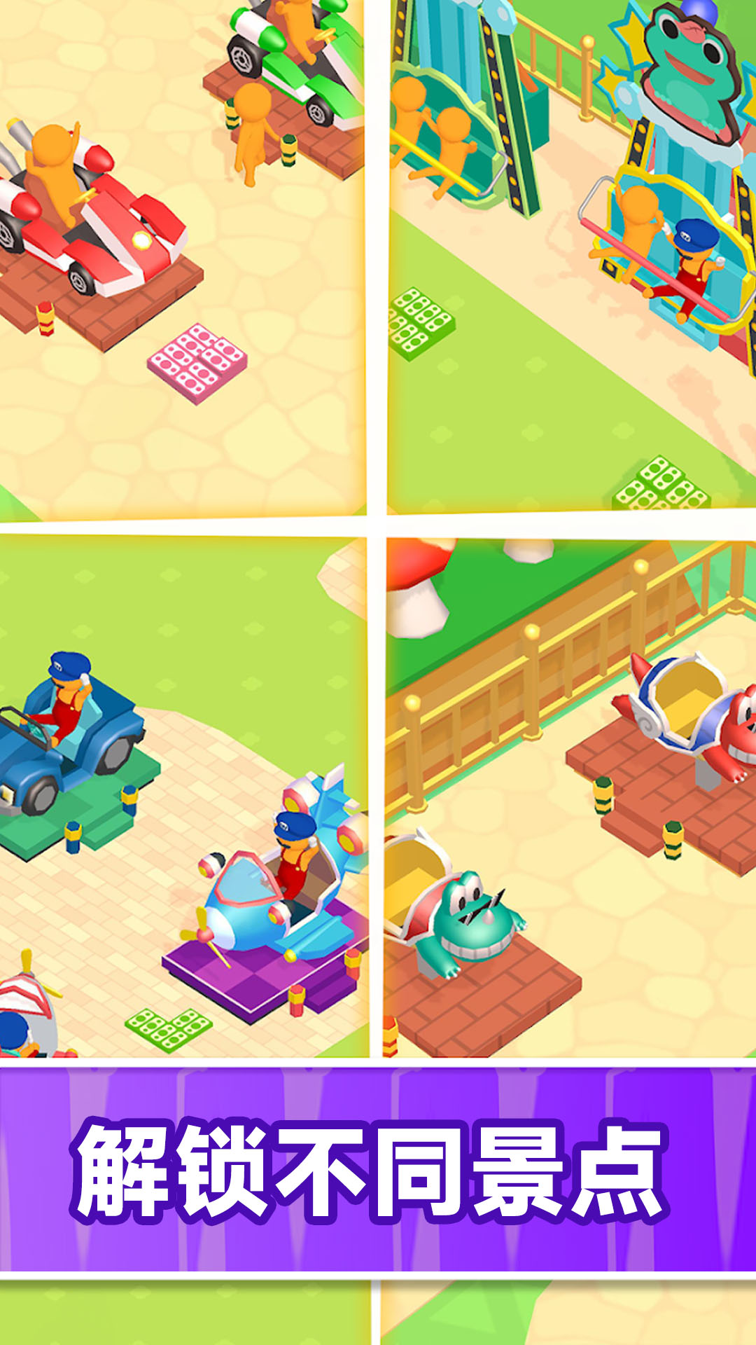 2、玩家可扮演游乐场老板、游客或工作人员,从不同视角体验游戏,如游客视角体验设施;