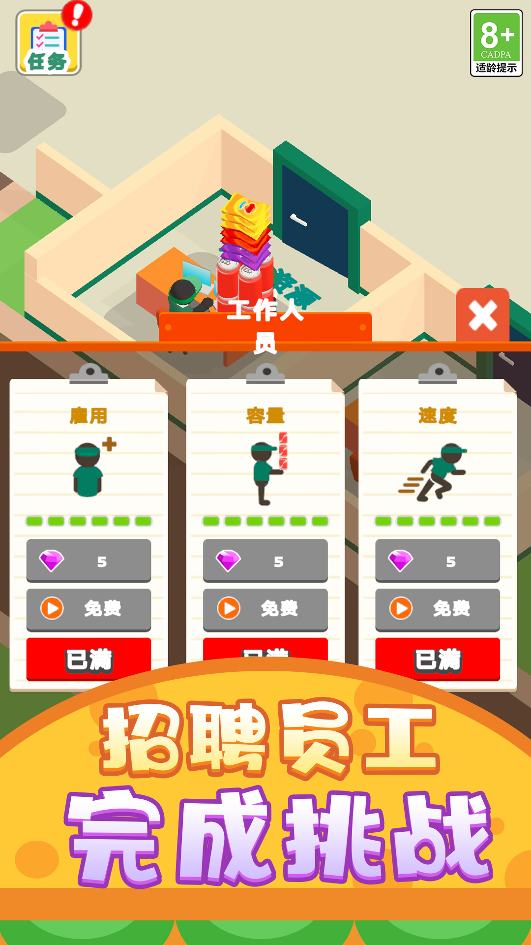 3、随着店铺越来越多,你无需为管理每一家店而手忙脚乱。你可以任命店长,让你的连锁商店在挂机状态下也能高效运营。