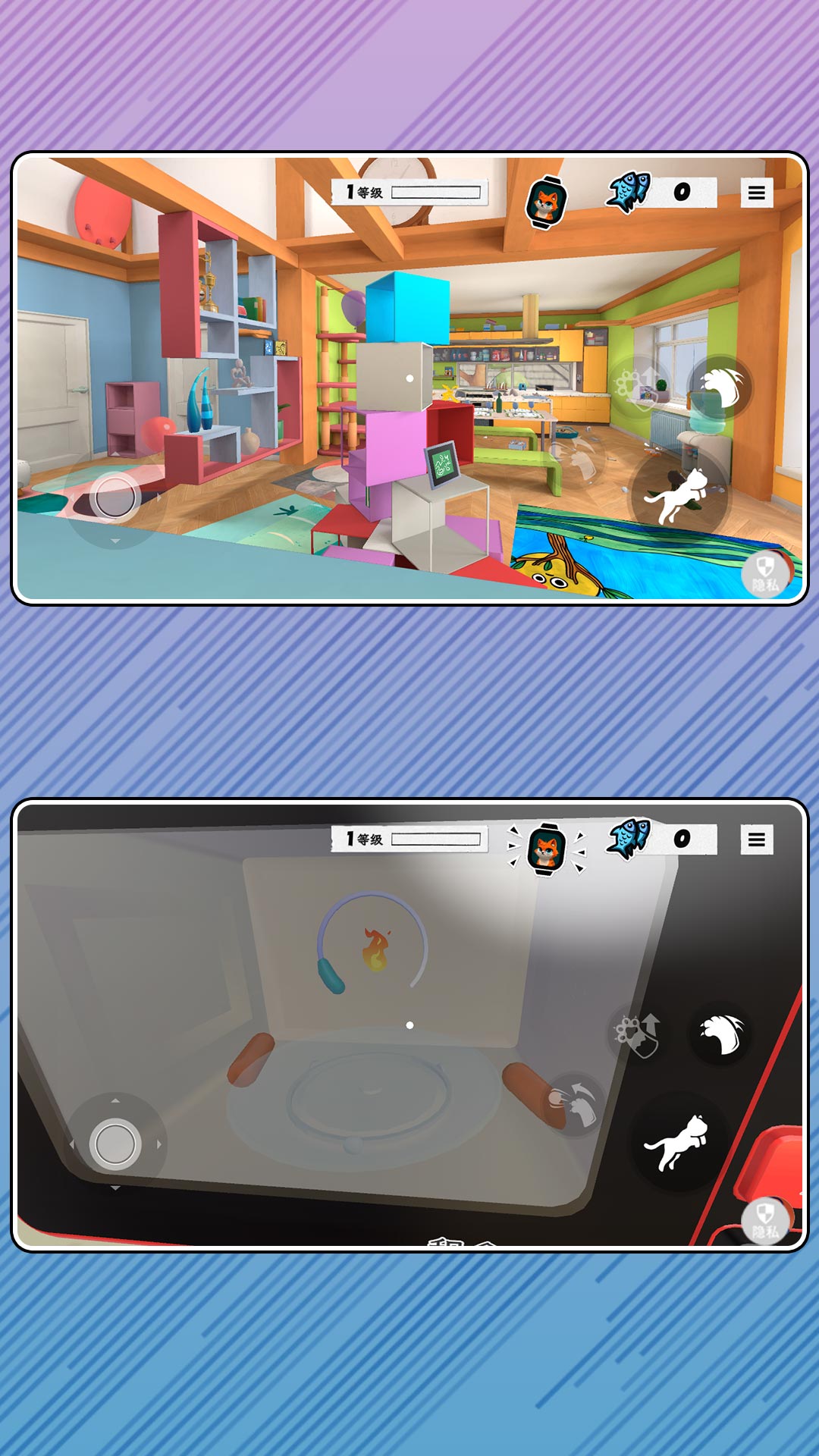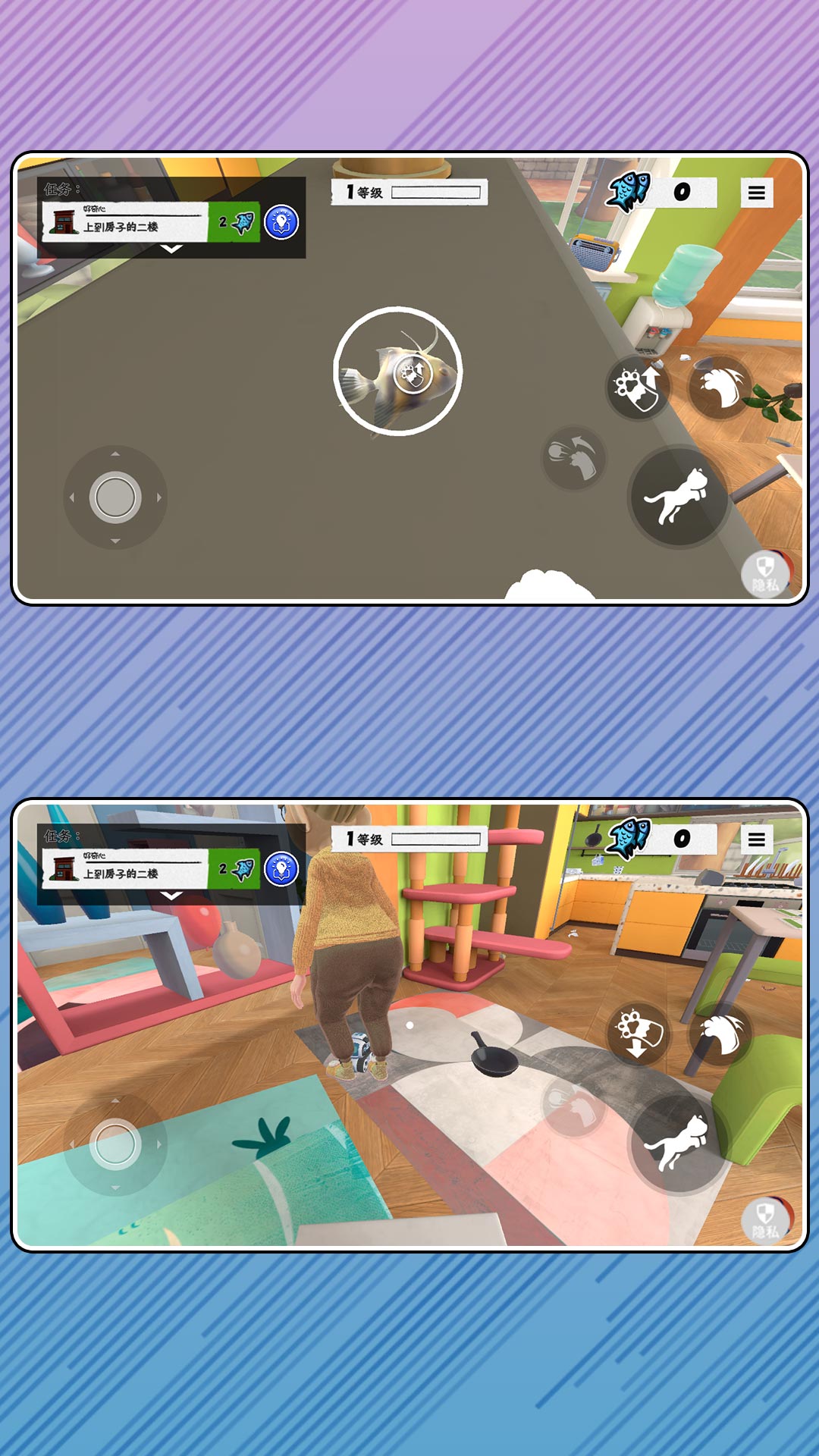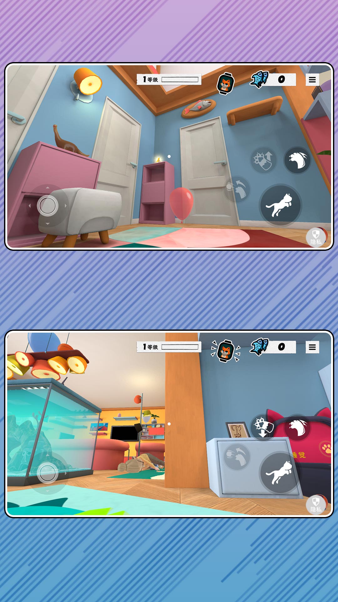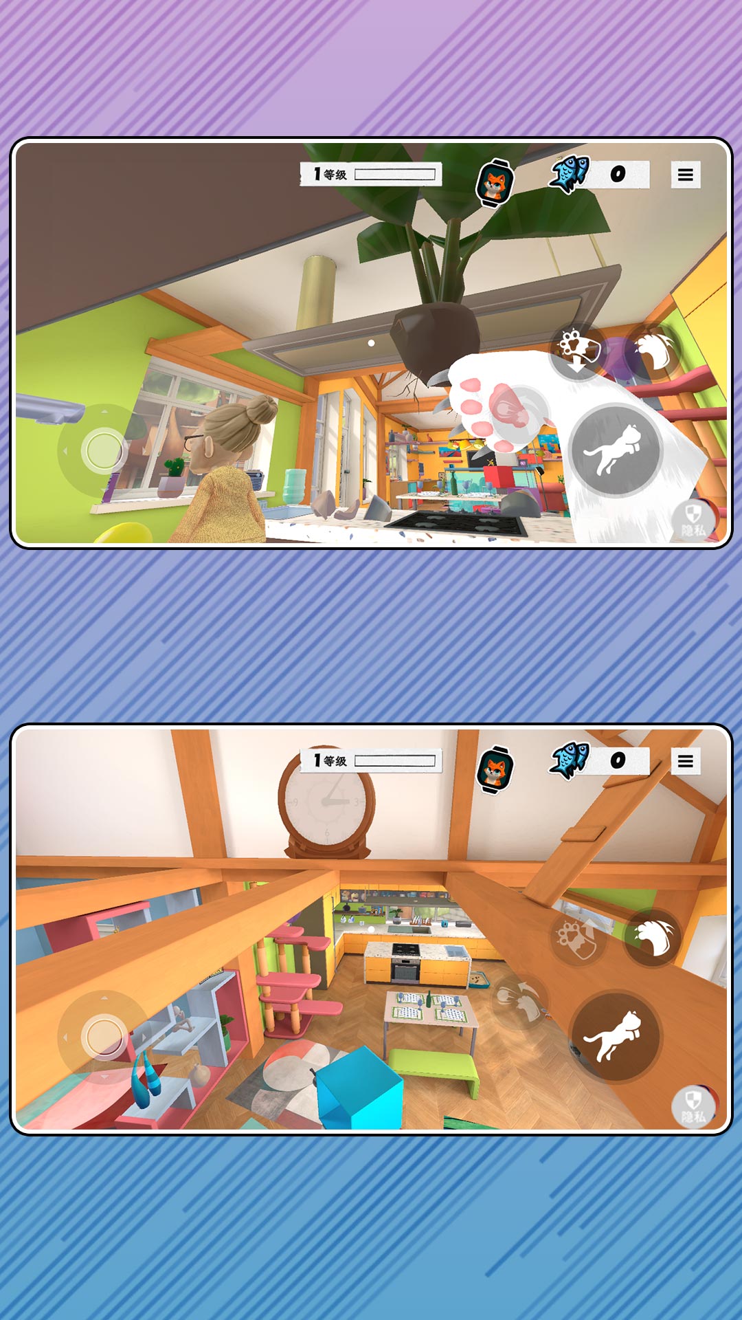 3、可以自由的转换视角,查看周围的环境,小心被主人发现,躲避攻击。