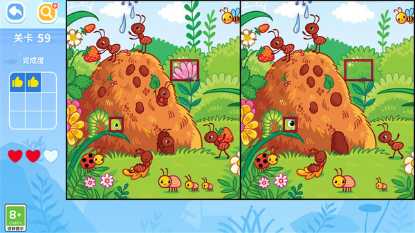 2、两位玩家可以在同一设备上,针对同一张图片进行找茬比赛,看谁眼疾手快。