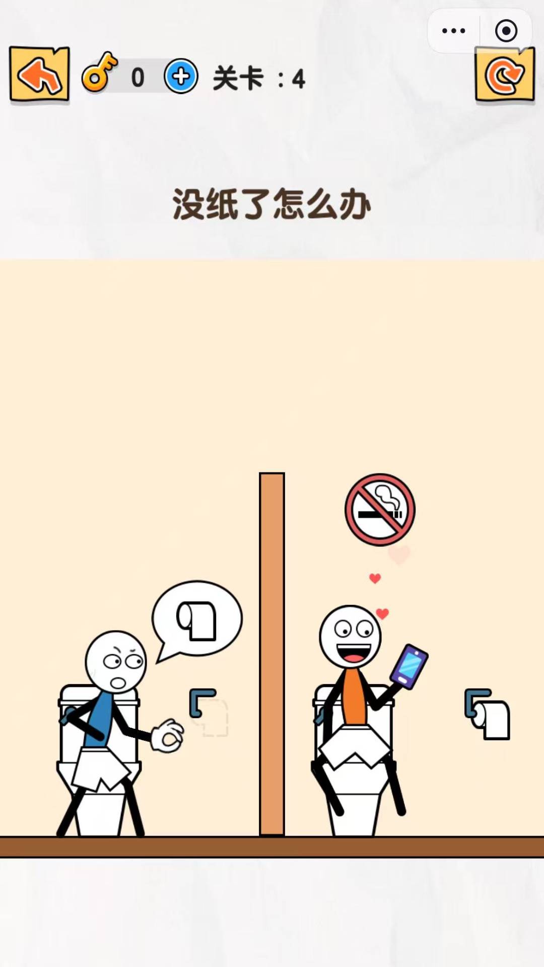 4、继续开启新的挑战,伸手帮助火柴人解决难题。