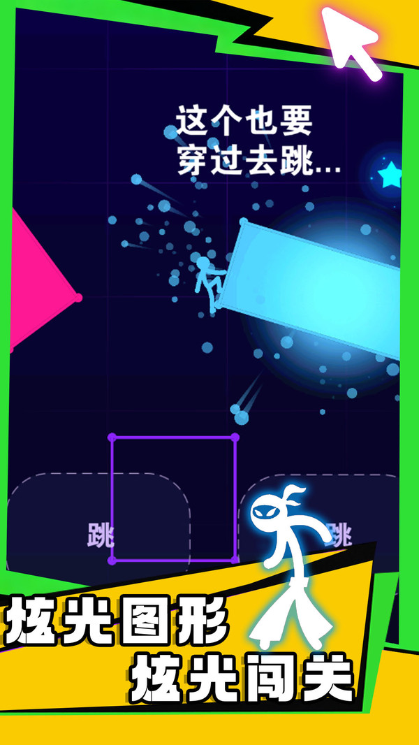 1、通过简单的触控来操控火柴人。核心目标是依次跳跃并点亮关卡内的所有暗色方块,最终抵达出口。