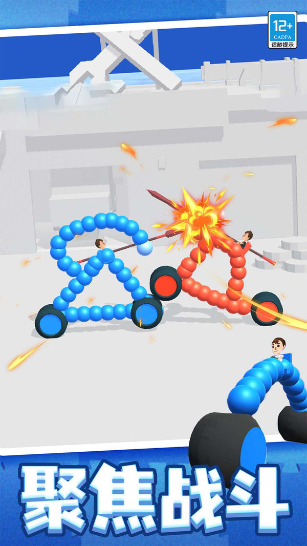2、由于物理引擎的存在,战况往往瞬息万变,看似弱小的载具可能因巧妙的结构而获胜,充满悬念和笑料。