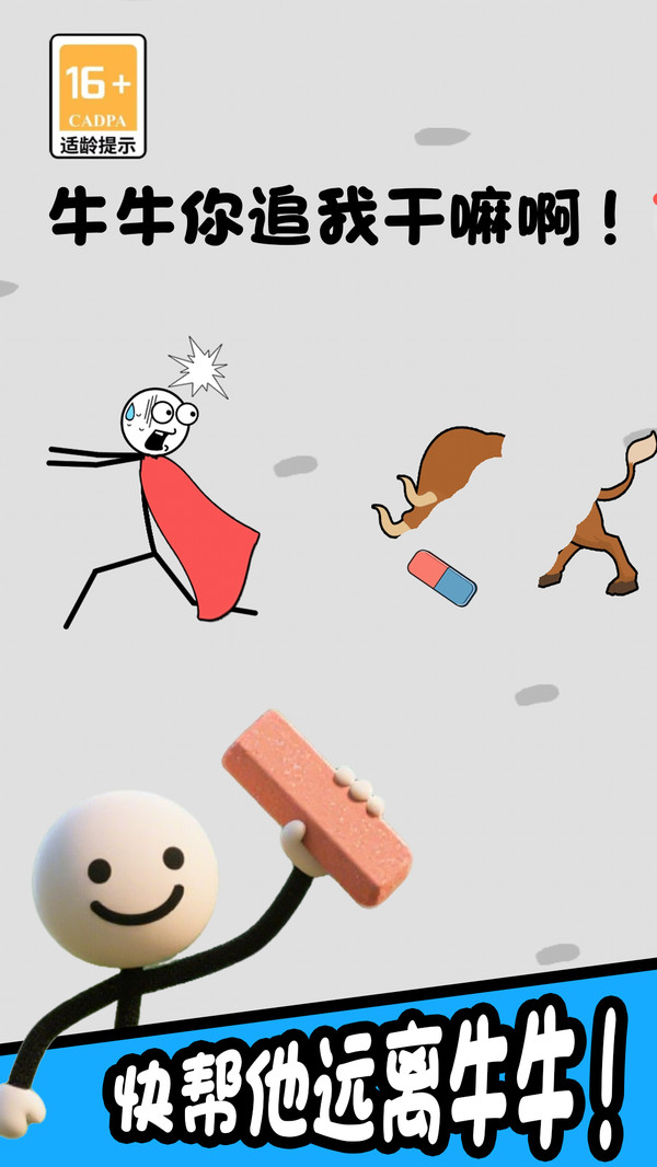火柴人狂欢是一款以创意擦除为核心玩法的休闲解谜游戏。玩家将帮助一个可爱的火柴人角色在各种奇妙的场景中完成冒险。游戏的核心机制在于使用橡皮擦工具:通过手指滑动,擦除关卡中阻挡去路的多余图案或线条,为火柴人开辟一条安全通路。画面清新明快,操作简单直观,关卡设计充满巧思,让你在轻松愉快的氛围中享受动脑解谜的乐趣。