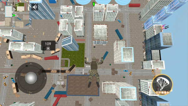 4、进入地图,选择降落地点,打开降落伞,准备降落战斗。