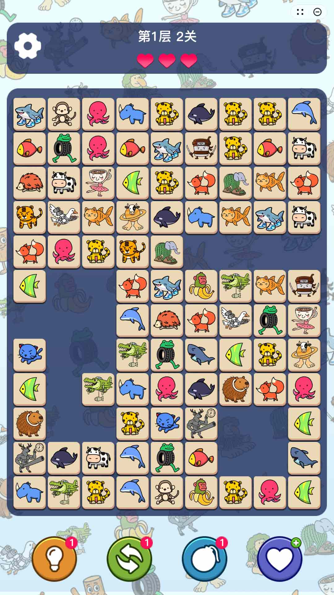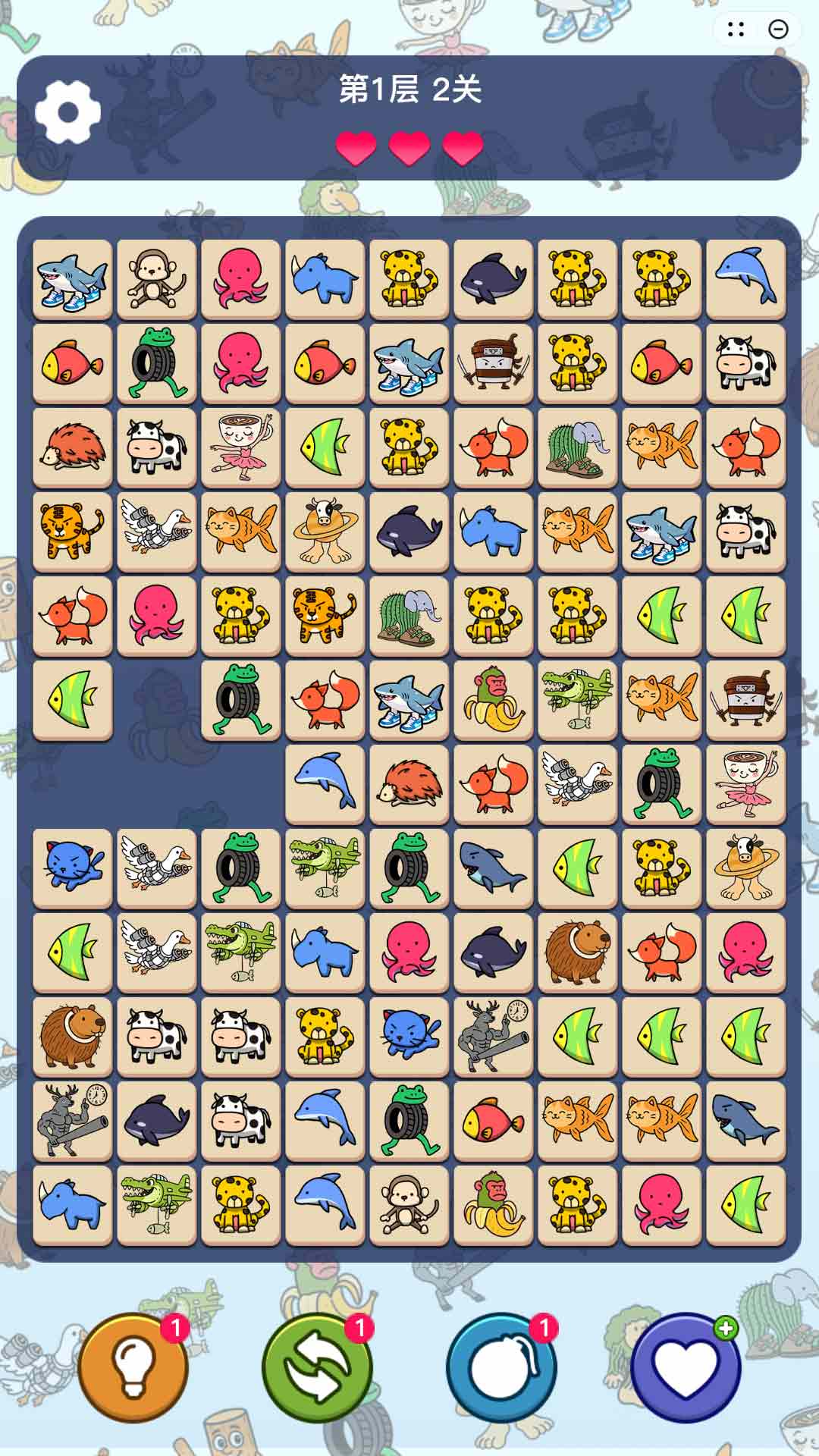 2、进入游戏主界面,即刻踏入山海之旅,找出相同的两个团,逐一消除吧。