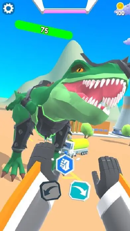2、战斗永不停止,高速奔跑需要同时使用机甲的机枪、光刃和火箭炮多种武器,精准打击怪物。