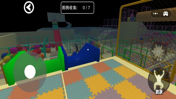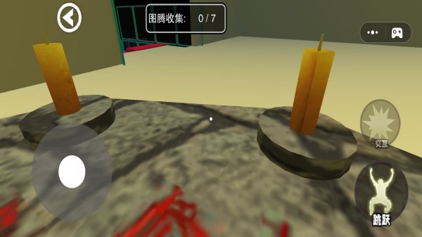 1、通过滑动屏幕控制角色移动,长按交互键可拾取散落的图腾关键道具。