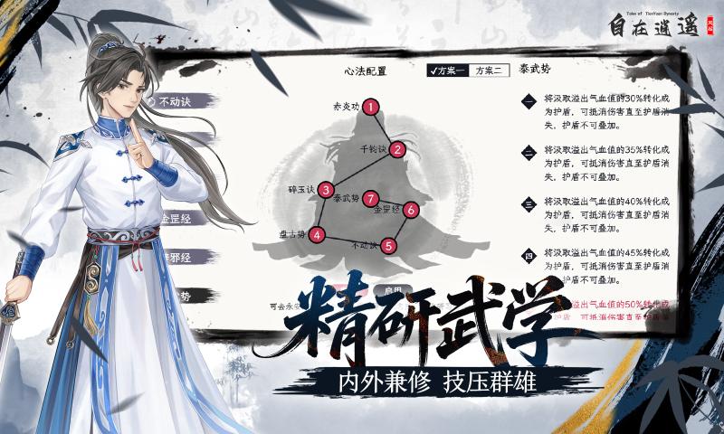 2、通过战斗与感悟,提升你的武学境界,从最初的江湖新秀,逐步参透乾坤至理,成为一代宗师;