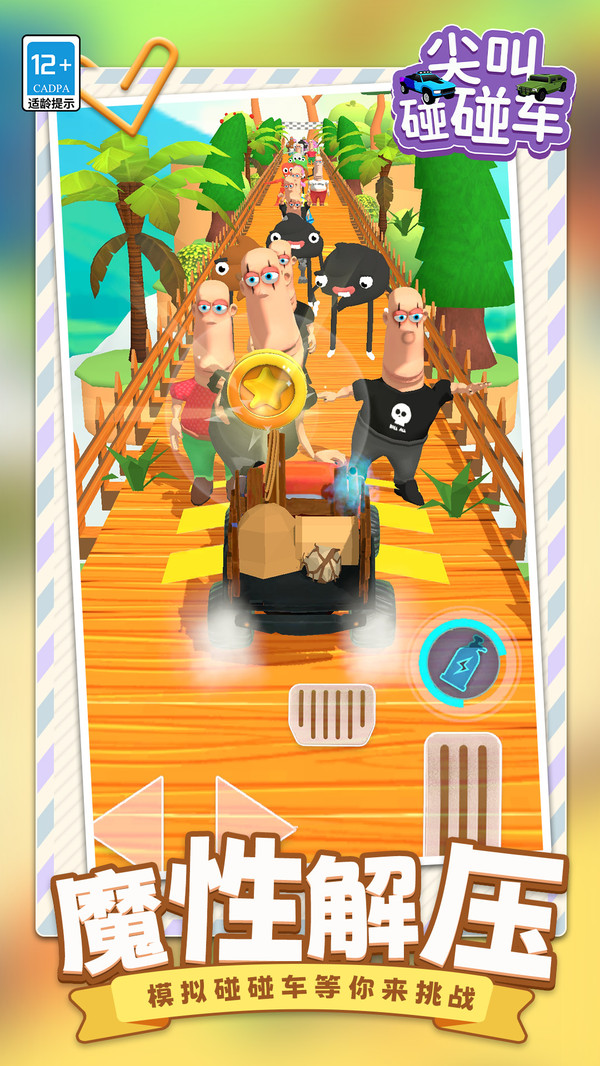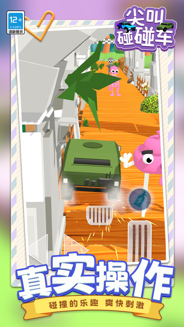 尖叫碰碰车是一款以欢乐碰撞为核心的休闲赛车游戏。玩家将驾驶造型夸张的碰碰车,在充满障碍和怪物的赛道上狂飙。不同于传统竞速游戏,本作的核心乐趣在于主动撞击沿途出现的各种搞笑怪物,用激烈的碰撞和搞怪的物理效果将它们击飞。游戏操作简单,节奏明快,结合卡通画风和幽默音效,带来轻松又刺激的驾驶体验。