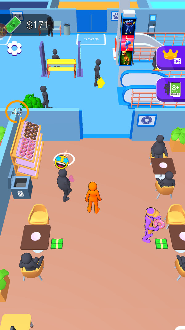 4、利用收益不断解锁更多的区域,吸引更多顾客扩大你的店面。