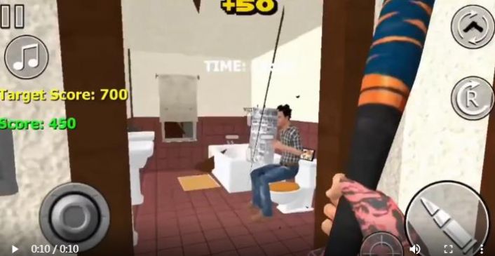 2、通过虚拟摇杆控制老奶奶移动,点击屏幕使用冲锋枪砸碎家具或墙壁。