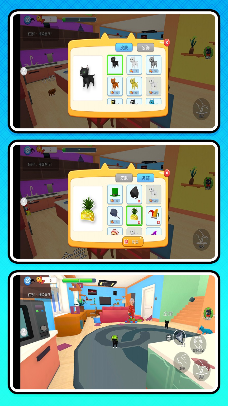 1、扮演活泼好动的小猫咪,展开一场充满趣味与挑战的解谜探险之旅,体验欢乐闯关冒险。