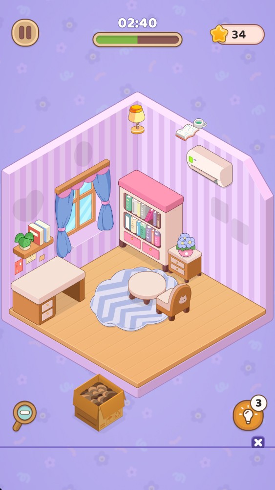 4.滑动屏幕,一点点装扮自己的房间。