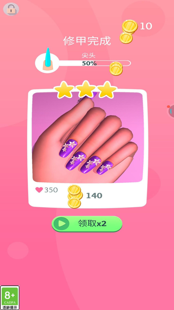 1、支持自由创作模式,可解锁高级工具与装饰材料,通过叠加、拼接、渐变等手法打造独一无二的专属美甲;