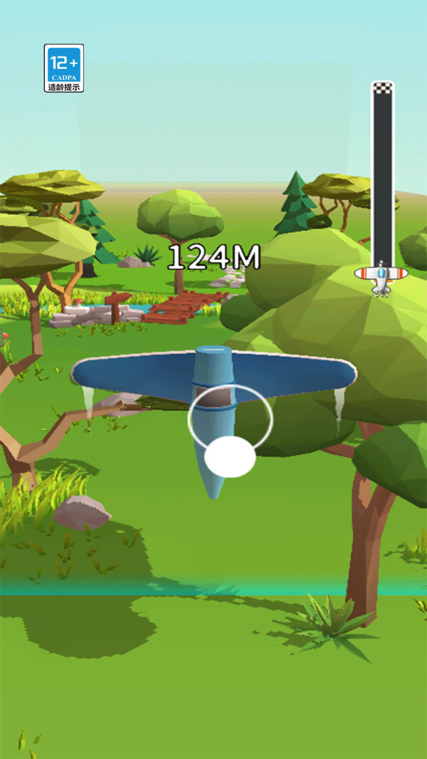 3、采用轻量物理引擎,模拟飞机滑翔时的重力、阻力和加速感,操作简单但需把握起飞角度和滑行平衡。