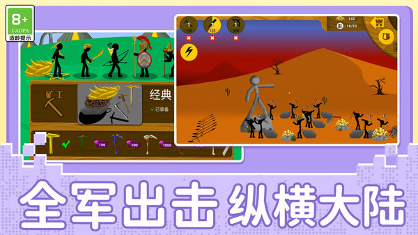 1、火柴人部队拥有精细的进阶树系统,从初级民兵到重装骑士的转化过程充满培养成就感。