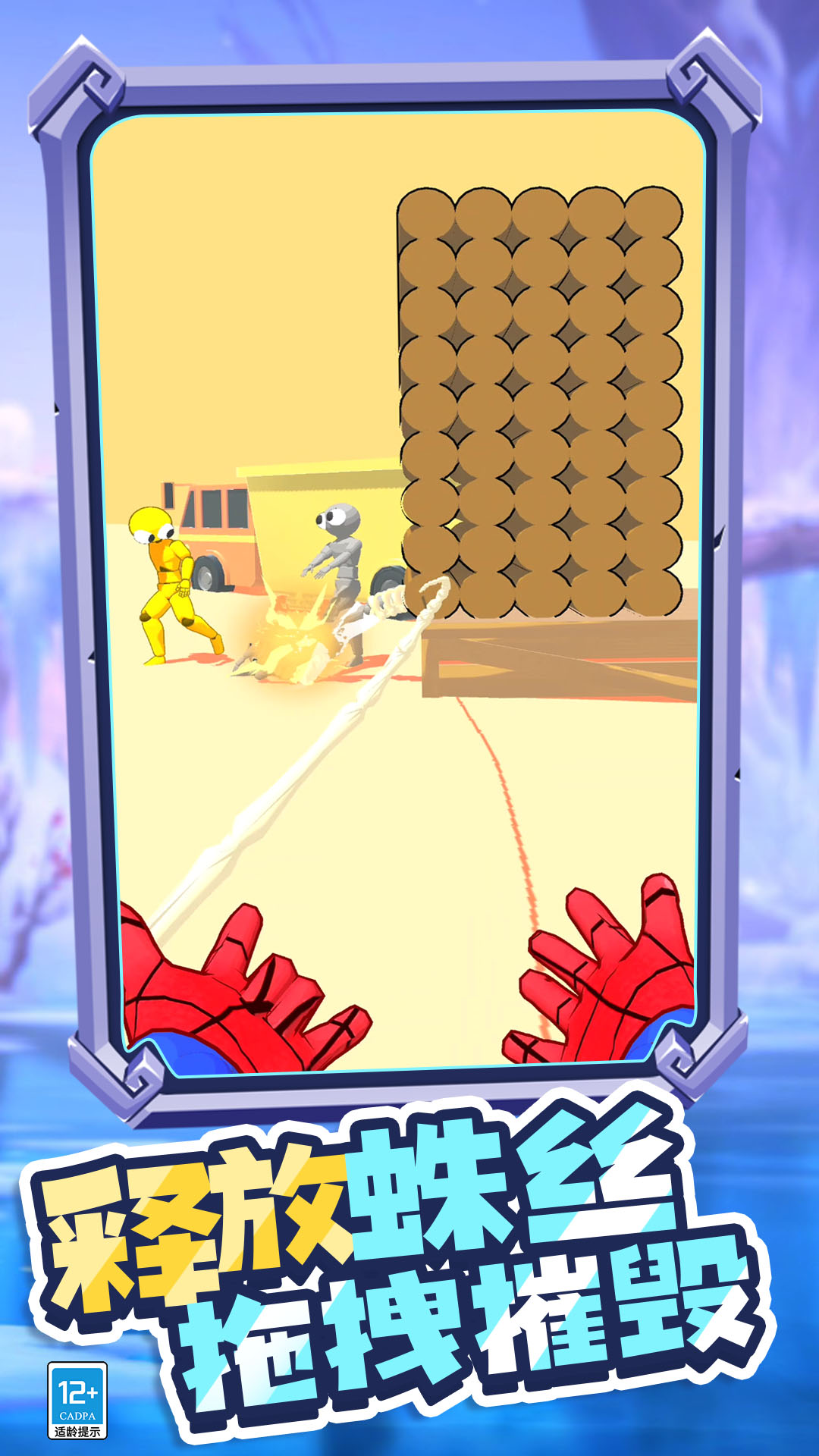 2、释放蛛丝,将人直接拖到下方,就能过关;