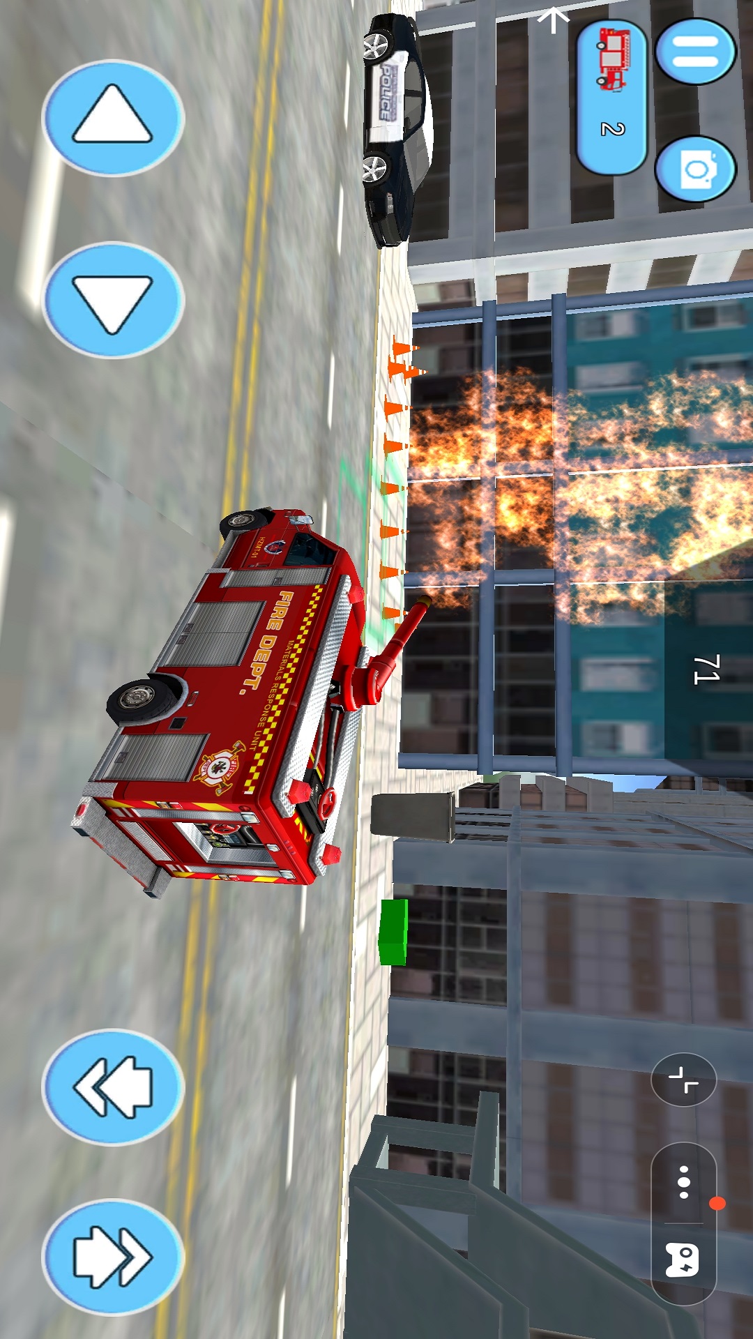 2、消防车的驾驶操作,如转向、刹车、爬坡和灭火设备的使用均基于真实物理规则设计;