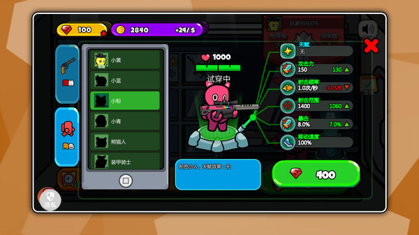 2、拥有多样角色供玩家解锁使用,每个角色拥有的属性不同。