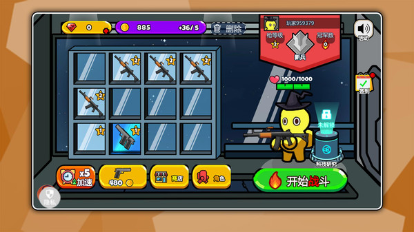 1、玩家可以在首页进行枪支购买,相同枪支可以合并进行升级,获得更强武器。