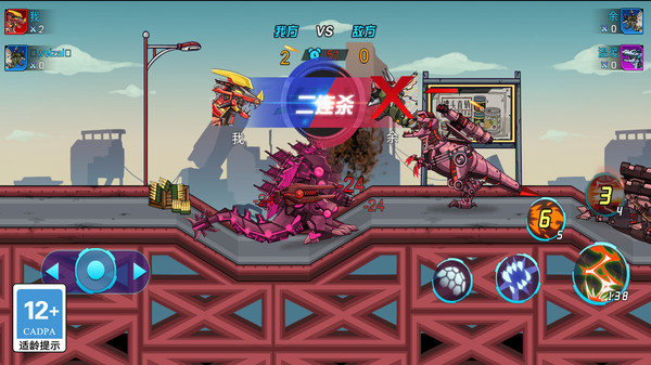3、主线剧情模式讲述恐龙机甲化背后的故事;挑战模式设有时间试炼、生存模式等,考验操作极限。