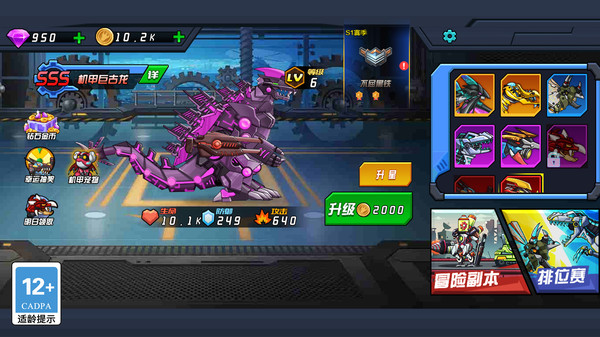 2、玩家可以对你的机甲角色进行强化升级,提升属性,还拥有超多个机甲恐龙使用。