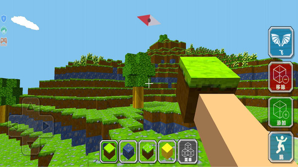 3、左右移动查看这个世界,不断的点击方块建造新的世界,完成任务。