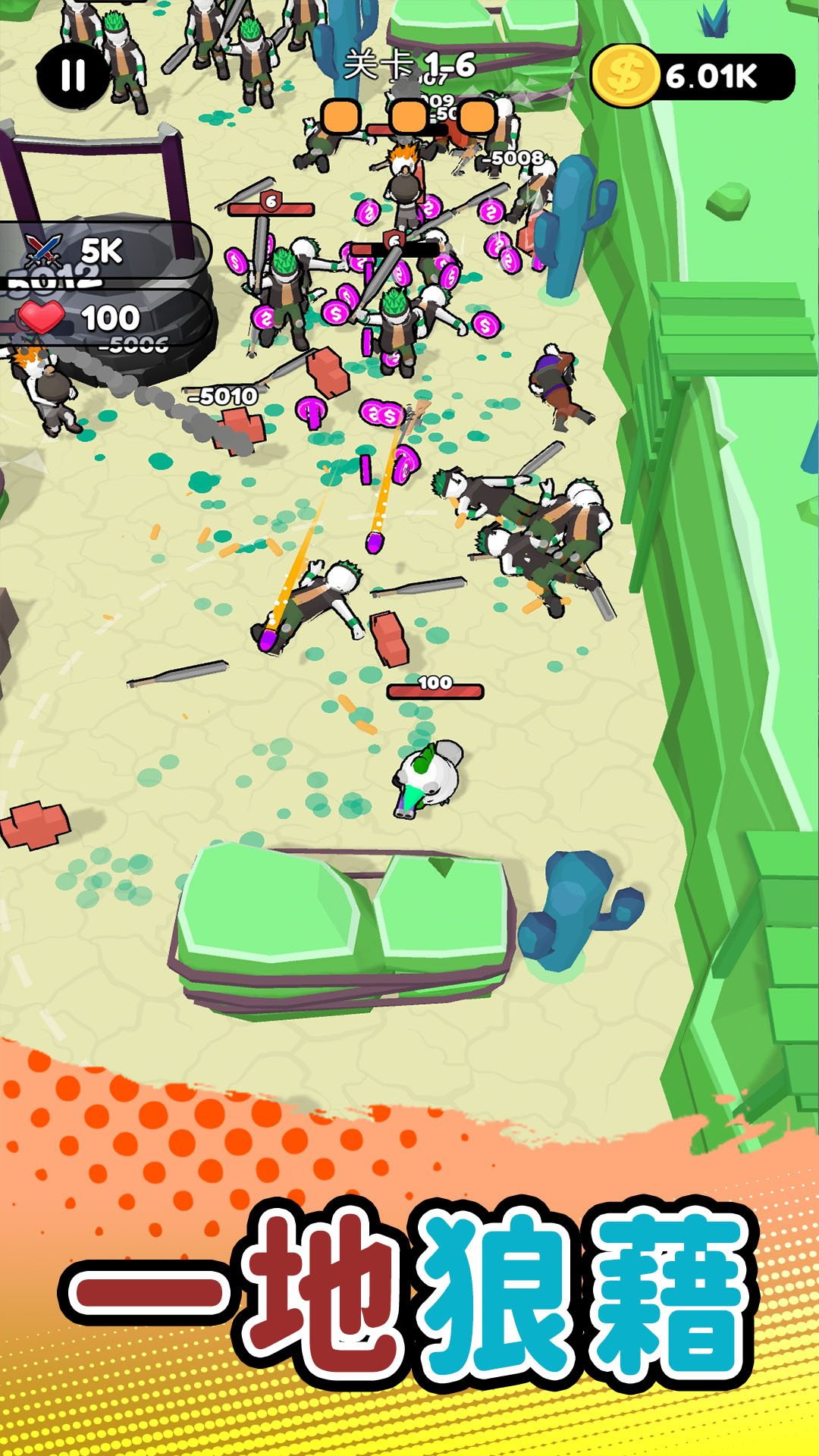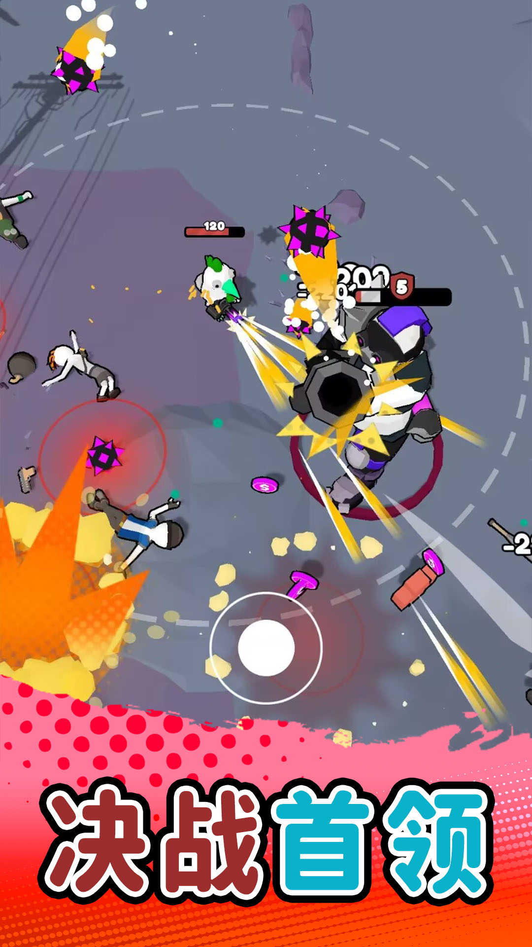 1、滑动屏幕拖动角色移动,面临的敌人都会消灭。