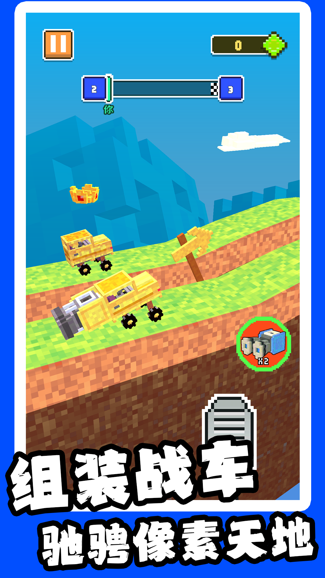 1、玩家可自由组合轮子、发动机、悬挂等数百种零件,每种零件均以像素风格精细呈现;