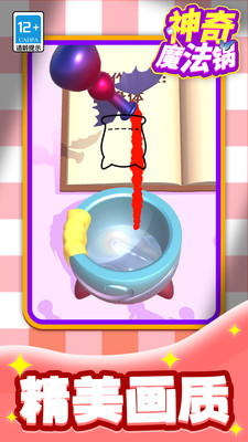 神奇魔法锅是一款充满奇幻色彩的模拟制作游戏,让你化身小小魔法师,用神奇的锅子调配各种有趣药水。游戏围绕魔法锅这个核心展开,每个锅都拥有独特魔力,能响应你的触摸发出微光。你将在布满星光的小屋里,收集闪烁的露珠和发光的花朵,把这些材料投入锅中。随着搅拌杖的转动,锅中的液体会变换色彩,冒出泡泡,散发出迷人香气。成功调配出的药水可以用来照顾各种萌宠,比如让害羞的云朵兽长出彩虹尾巴,或是帮调皮的火苗犬熄灭身上的火焰。每一次混合都是一场惊喜,你永远不知道下一锅会变出什么奇妙效果。