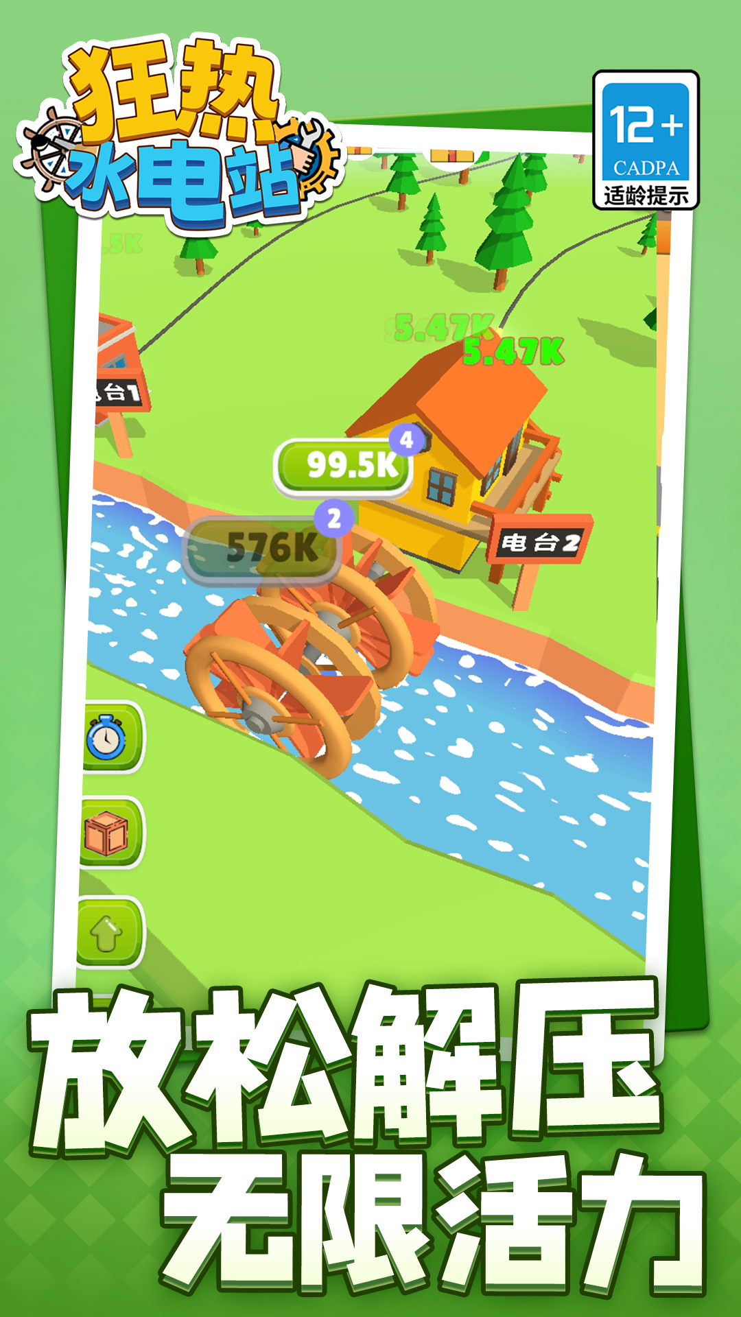 狂热水电站是一款以建造水力发电,积极赚钱的经营模拟游戏,玩家需在山脉、河流、湖泊等多样地形中选择合适位置建造水力发电站,确保充分利用水流能量,通过安装水车、连接马达与传动装置,构建基础发电,不断的完成各种各样的任务,提升发电效率,收获多多的财富,成为水电大亨是你的最终目标。