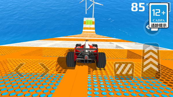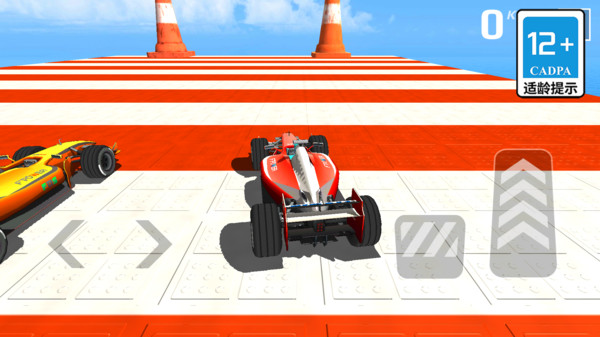3、左侧移动方向,右侧控制油门刹车,在赛道上驰骋,顺利到达终点即可过关。