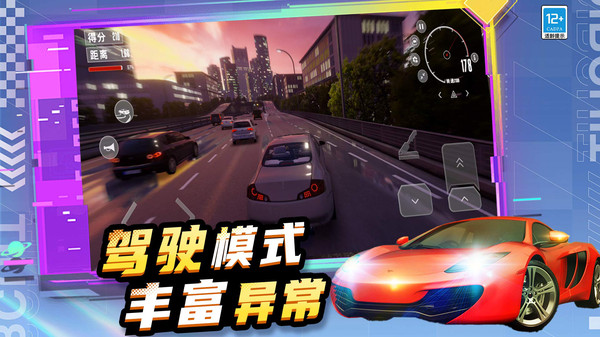 1、采用虚拟方向盘或重力感应控制方向,独立油门刹车按键。支持手动挡和自动挡切换,满足不同玩家的操作偏好。