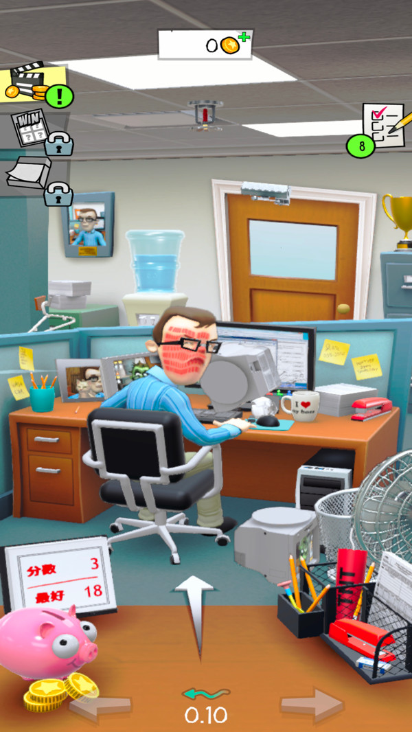 3、设有日常恶作剧任务和特殊挑战目标,如让老板在会议中出丑或让整个部门同时大笑。完成任务获得新道具和装扮。