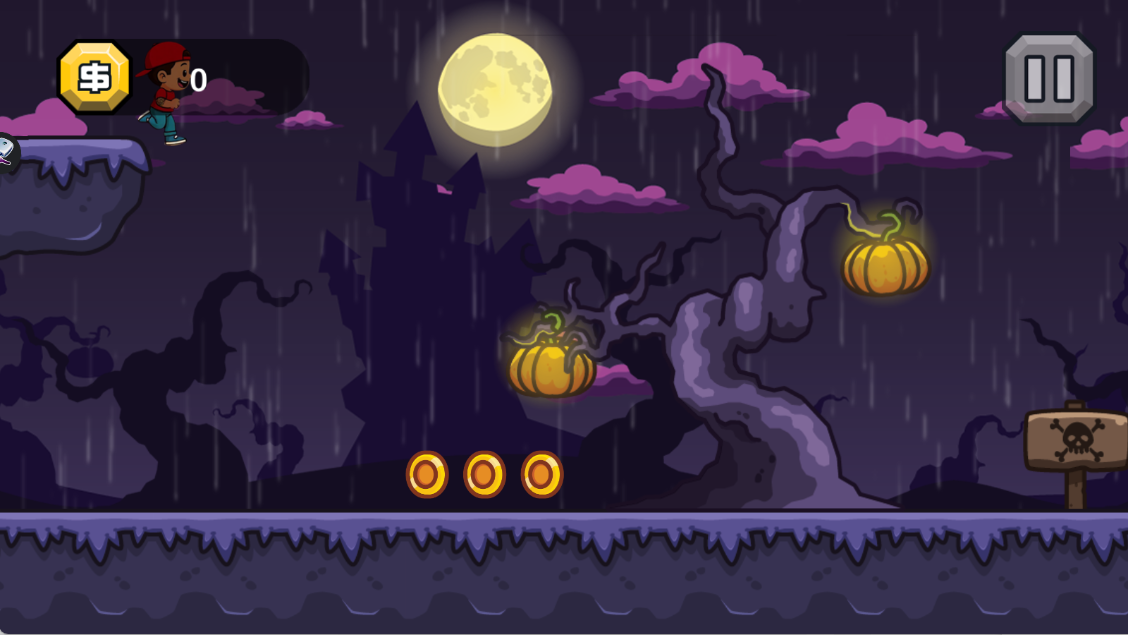 1、通过简单的滑动和点击控制角色跳跃、下滑和冲刺,避开森林中的障碍物和陷阱。